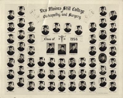 A composite photo of the Des Moines Still College of Osteopathy and Surgery DO Class of 1956. Dr. Kreamer's picture can be found towards the upper right-hand side of the composite.