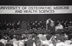 A speaker talking during the Spring 1988 graduation ceremony.