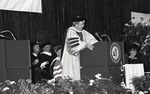 A speaker talking during the Spring 1988 graduation ceremony.