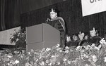 A speaker talking during the Spring 1988 graduation ceremony.