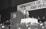 Leonard Azneer speaking during the Spring 1988 graduation ceremony.