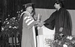 Leonard Azneer presenting a diploma during the Spring 1988 graduation ceremony.