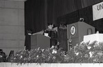 A speaker talking during the Spring 1988 graduation ceremony.