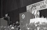 Leonard Azneer speaking during the Spring 1988 graduation ceremony.