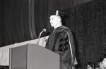 Leonard Levy speaking during the Spring 1988 graduation ceremony.