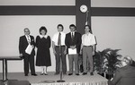 Men and a woman on stage during the 1988 Awards Ceremony.