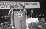 A speaker talking during the Spring 1988 graduation ceremony.