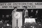 Leonard Azneer speaking during the Spring 1988 graduation ceremony.