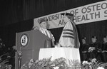 Leonard Azneer speaking during the Spring 1988 graduation ceremony.