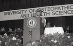 Leonard Azneer speaking during the Spring 1988 graduation ceremony.