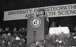 Leonard Azneer speaking during the Spring 1988 graduation ceremony.