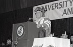 Leonard Azneer speaking during the Spring 1988 graduation ceremony.