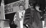 Leonard Azneer presenting a diploma during the Spring 1988 graduation ceremony.