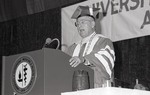 Leonard Azneer speaking during the Spring 1988 graduation ceremony.