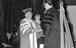 Leonard Azneer presenting a diploma during the Spring 1988 graduation ceremony.