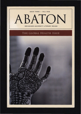 Issue three of Des Moines University's literary review, Abaton published in Fall 2009. This Global Health issue came with a CD addition at the end of the book. The CD is titled "Change one life, change the world: Simon Estes on the power of compassion".